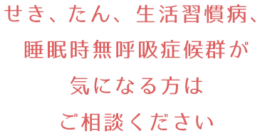 『せき、たん、息切れ』などの呼吸器症状でお困りの患者さんはぜひ当院に御相談ください。
